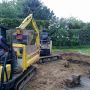 Hier sehen Sie den Bauablauf eines Außen-Schwimmbeckens mit hellblauer Folienauskleidung, Innenmaße: 6m x 3m.