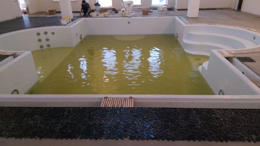 Hier zeigen wir den Bauablauf eines außergewöhnlichen Schwimmbadprojektes. Es entstand ein luxuriöses glasmosaik-gefliestes Hallenschwimmbad mit den Abmessungen 8,00m x 6,50m, mit umlaufender Überflutungsrinne.